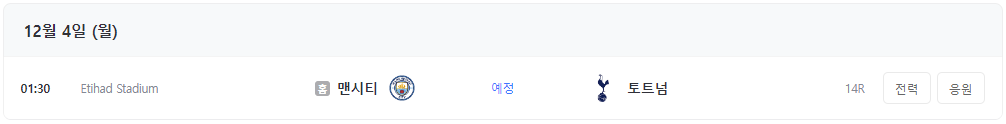 ▶ 12월 4일 토트넘 vs 맨시티